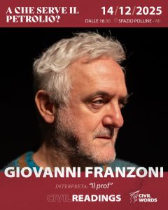 In un mare fatto di attese e silenzi che nessuno dei due sapeva nominare, l’incontro tra il ragazzo e l’adulto diventa una macchia di petrolio: un’ombra che si espande in ciascuno di loro, cambiando per sempre ciò che credevano di essere. La lettura scenica si terrà domenica 14 dicembre alle ore 16:00 presso Spazio Polline – Milano.