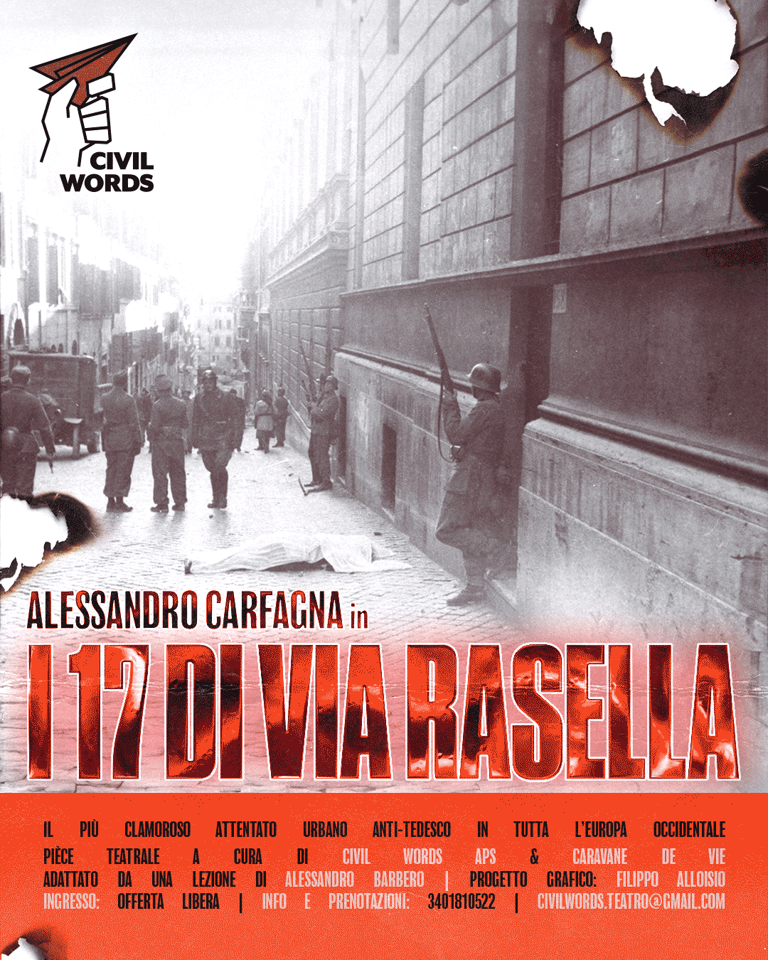 Civil Words parte dall’intervento di uno storico, Alessandro Barbero, per raccontare la verità accertata dell’attacco e per fare luce sulle menzogne che avvelenano la memoria italiana, smentendole. Il testo è tanto un monito quanto un invito: ognuno di noi è responsabile della trasmissione della memoria passata alle future generazioni e questo dev’essere fatto in un’ottica di onestà, umiltà e verità; se lasciassimo che le menzogne contaminino i fatti che ci hanno portato dove siamo oggi comprometteremmo il nostro futuro e la nostra identità nazionale.